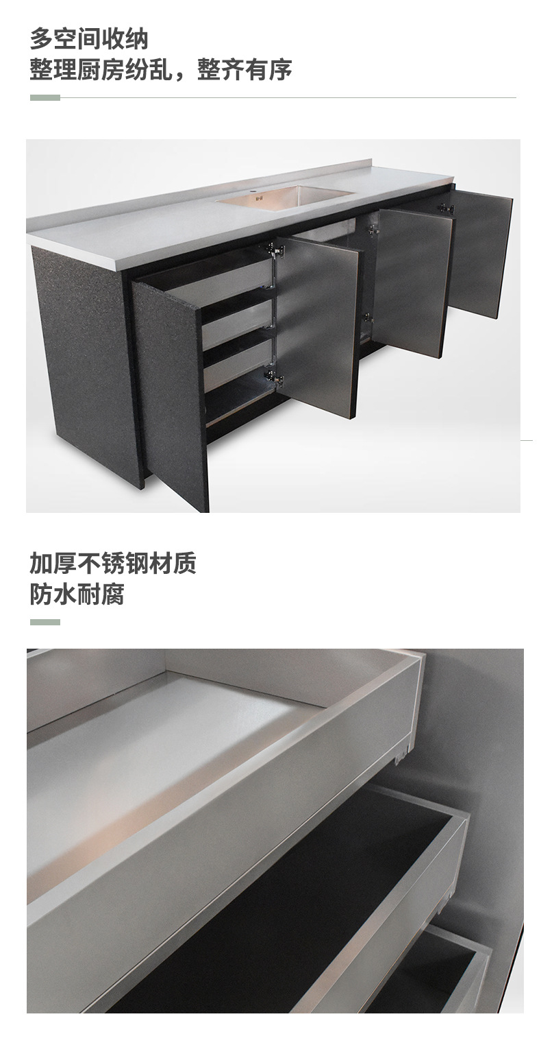 佛山厂家供应整体不锈钢橱柜 家用灶台柜碗柜水槽定制不锈钢橱柜