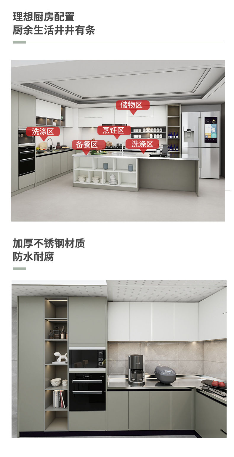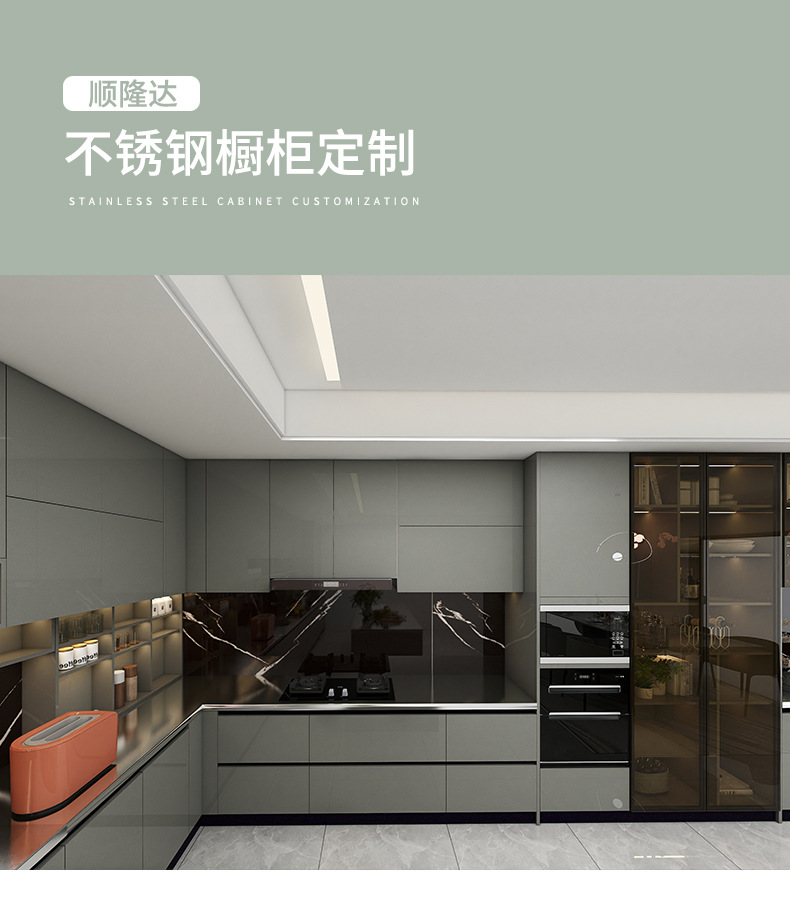 厂家直供整体304不锈钢厨柜一体式储物柜碗柜高端家用小户型定 制