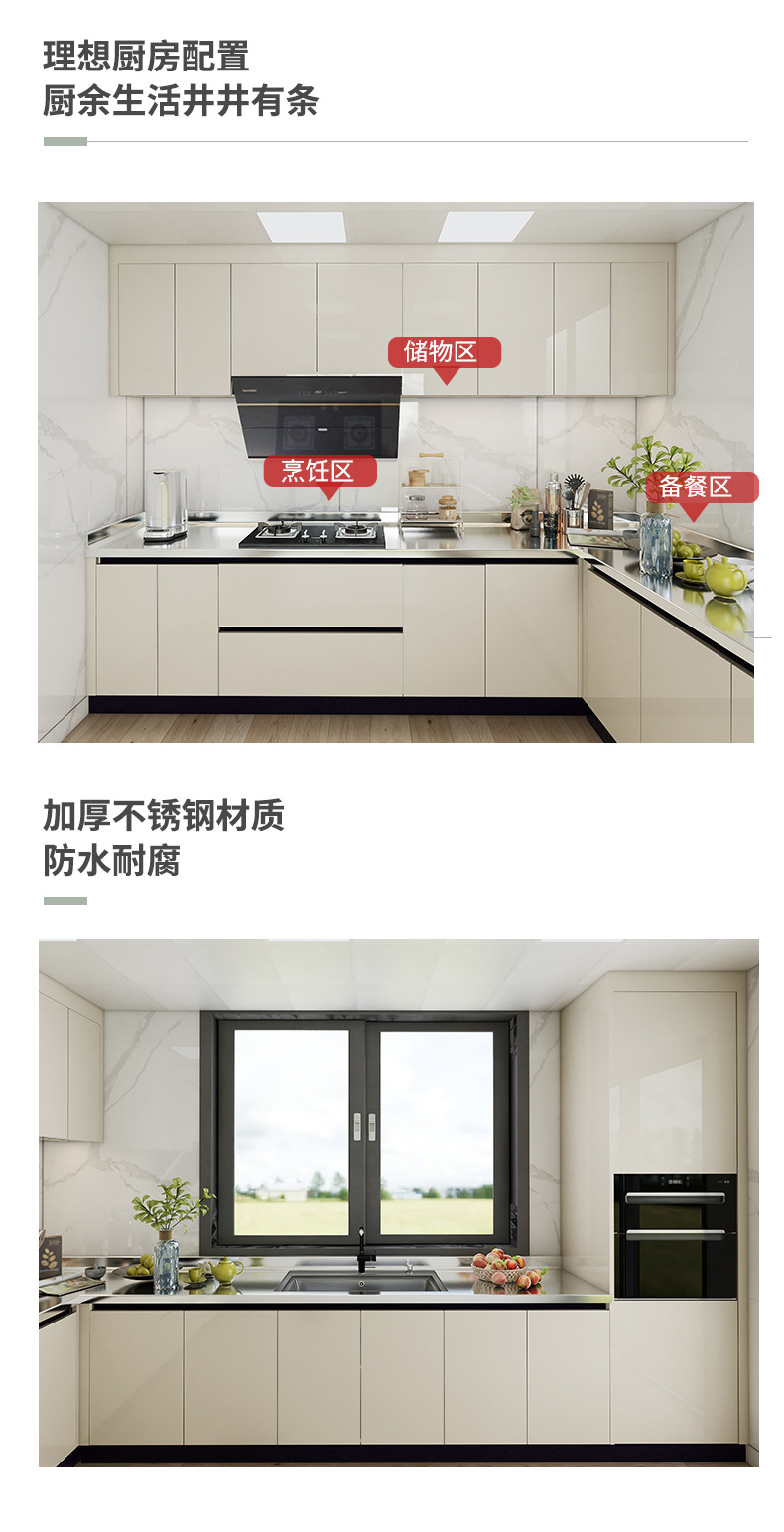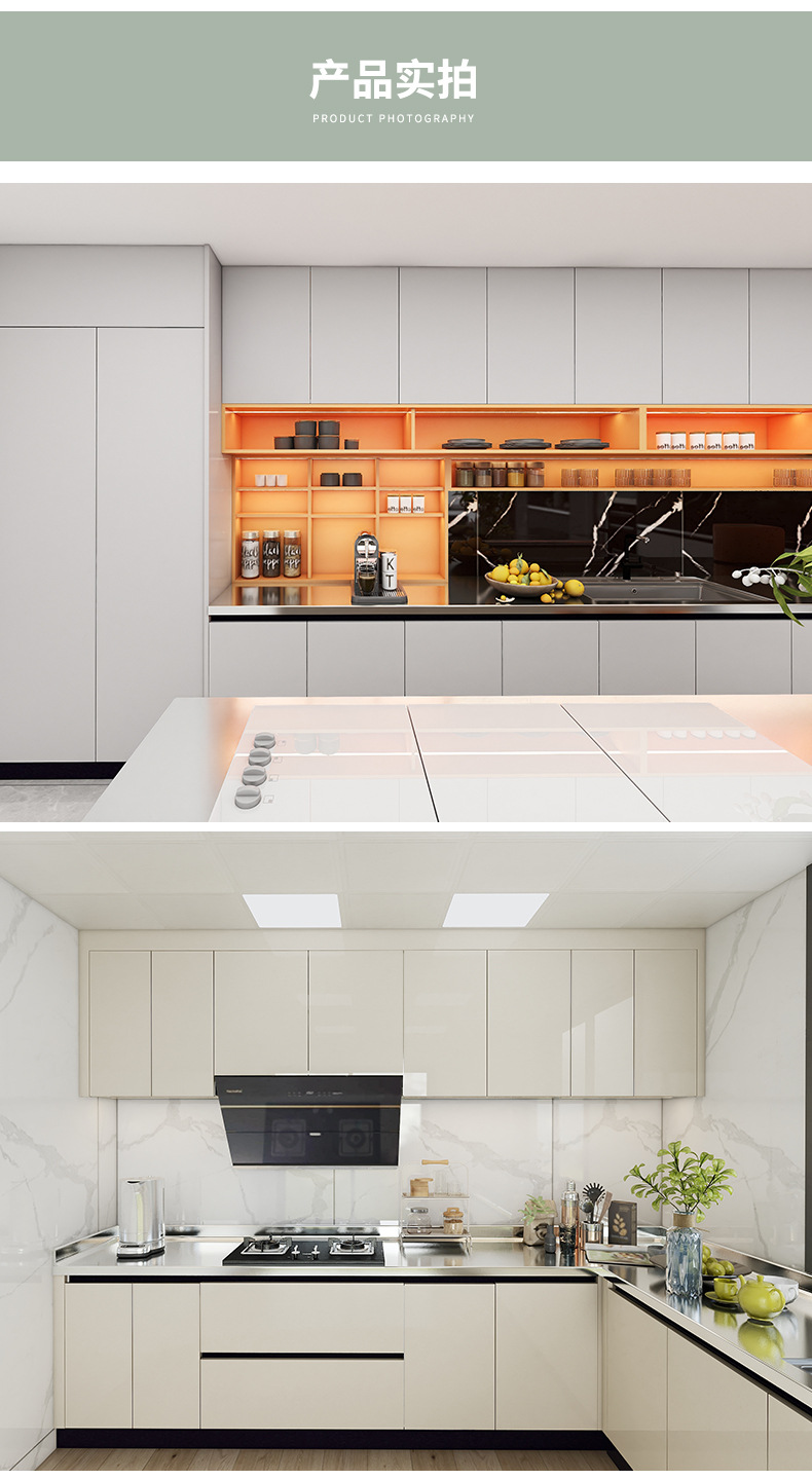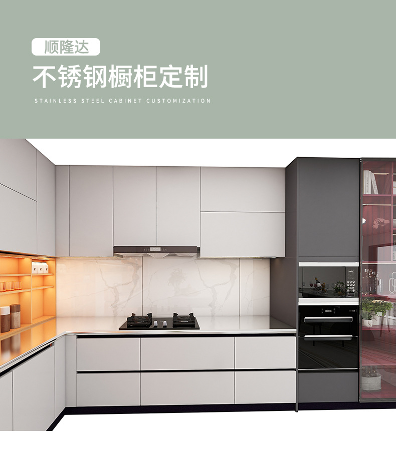 佛山厂家整体橱柜衣柜定制现代整体厨柜家用一体不锈钢台面橱柜