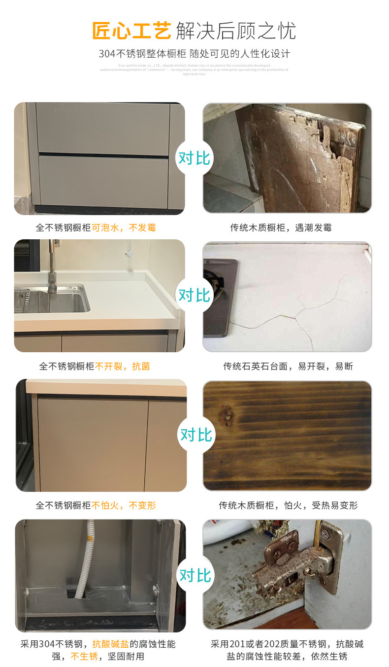 佛山厂家整体橱柜简易防潮家用304不锈钢一体式厨柜整体厨房整体